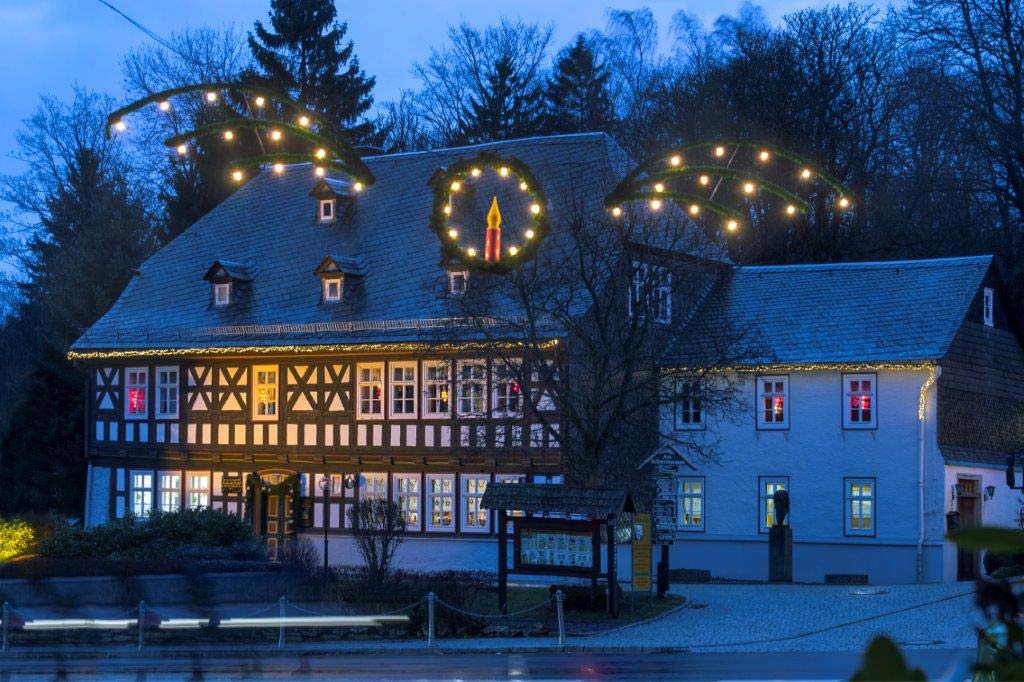 Die Fröbelstadt Oberweißbach ist ein reizvoller Erholungsort im Thüringer Wald. Dieses Jahr findet das Lichterfest in Oberweißbach vom 14.12. – 15.12. 2024 gleichzeitig mit dem Weihnachtsglanz im Schwarzatal statt.