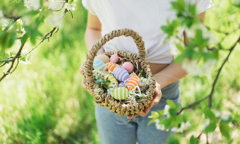 In der österlich geschmückten Innenstadt werden am 6. April 2025 zum Ostermarkt in…
