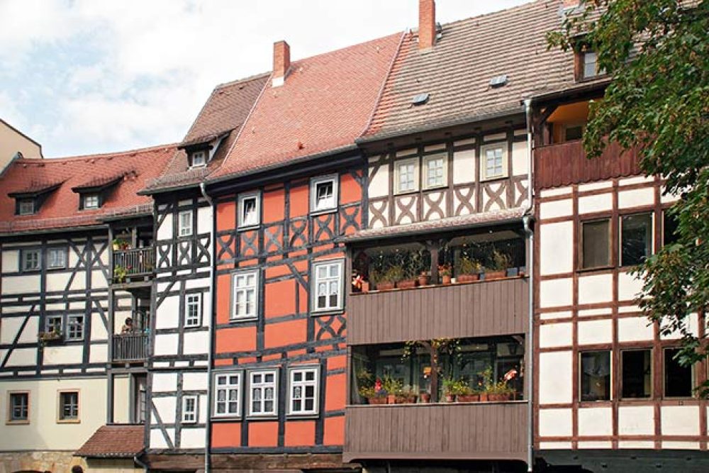 In sechs Bögen überspannt sie den durch Erfurt fließenden Fluss Gera. Mit 120 Metern Länge kann sie zwar allein keine Schlagzeilen machen, aber die Besonderheit der Erfurter Krämerbrücke ist ihre Bebauung.