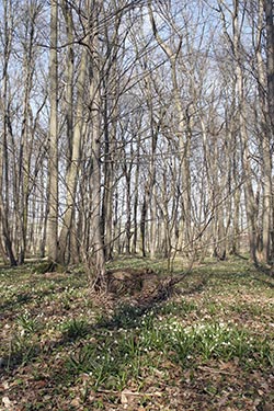 Kurz darauf geht es rechts hinein in den Laubmischwald. Es dauert nicht lang bis man die ersten Gruppen von Märzenbechern und anderen Frühblühern entdeckt.