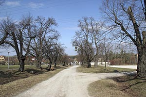 Man gelangt recht schnell zu der nicht umsonst so genannten „Schönen Lindenallee“, der man einige Hundert Meter bergauf bis zu dem kleinen Parkplatz am Sportplatz folgt.