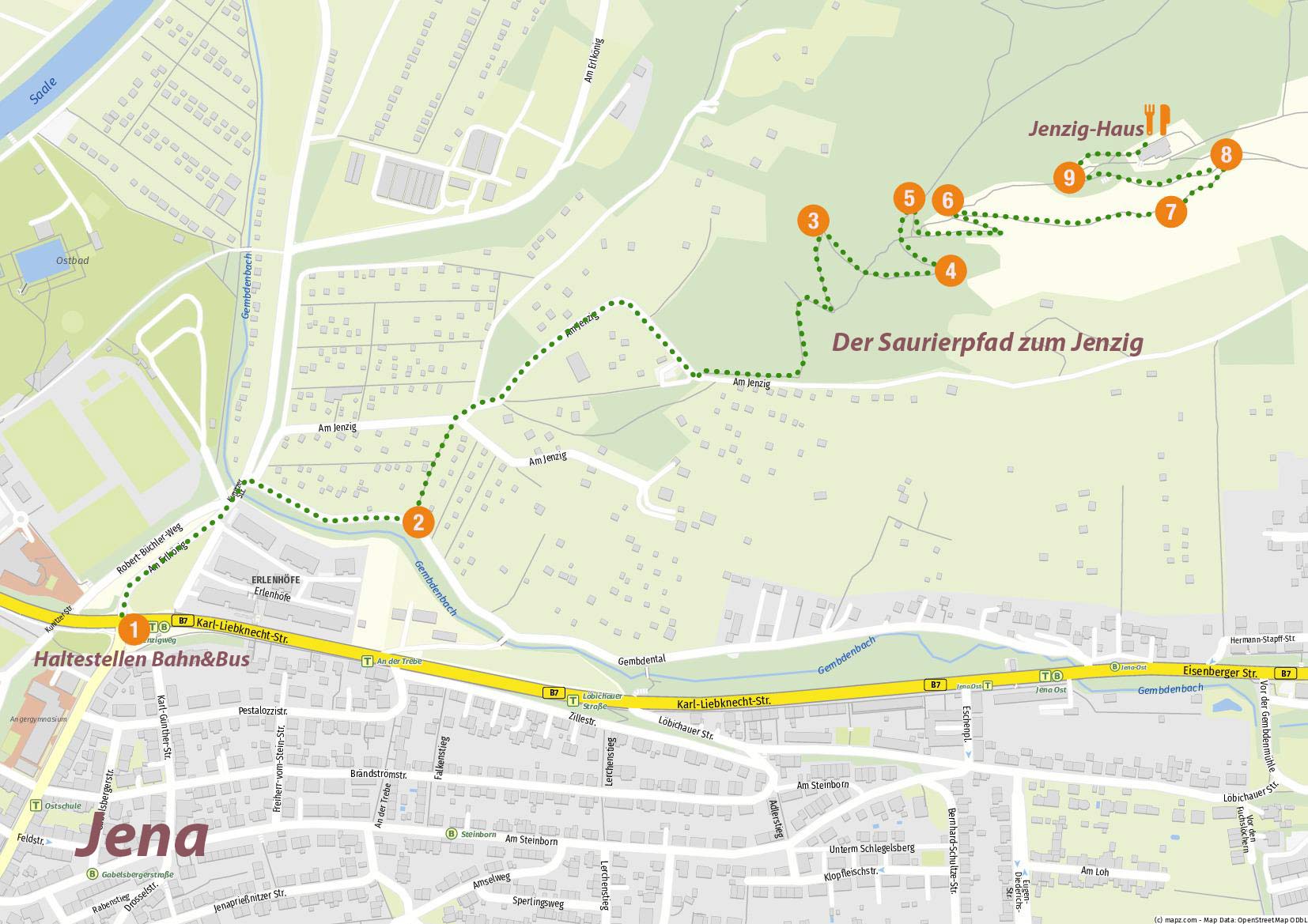 Anreise ÖPNV: Bus/Tram bis Jena-Ost, dann kurzer Fußweg zu den Einstiegen