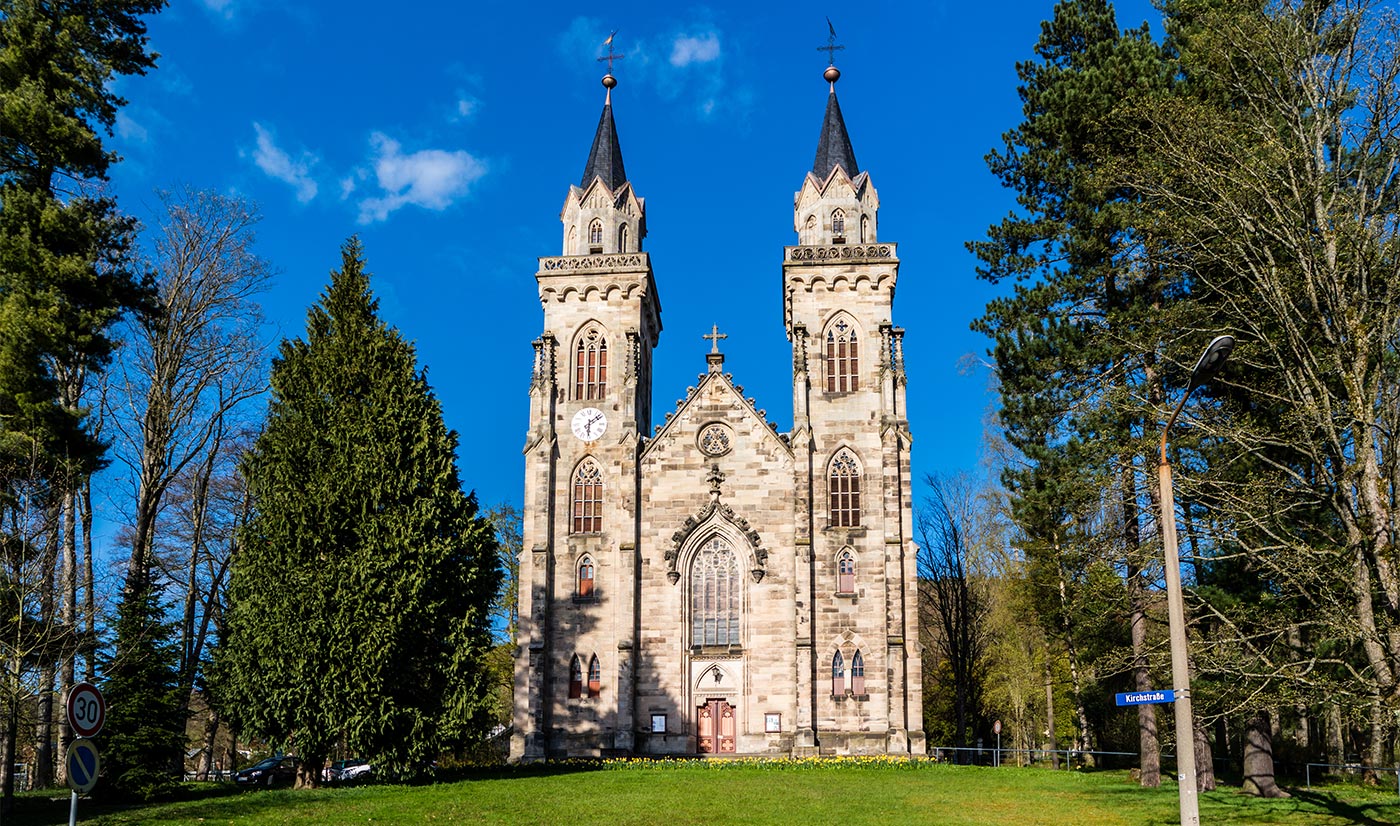 Die Evangelische Stadtkirche St. Peter wurde im Jahre 1845 nach Entwürfen von Prof. Karl Alexander von Heideloff im neugotischem Stil erbaut.