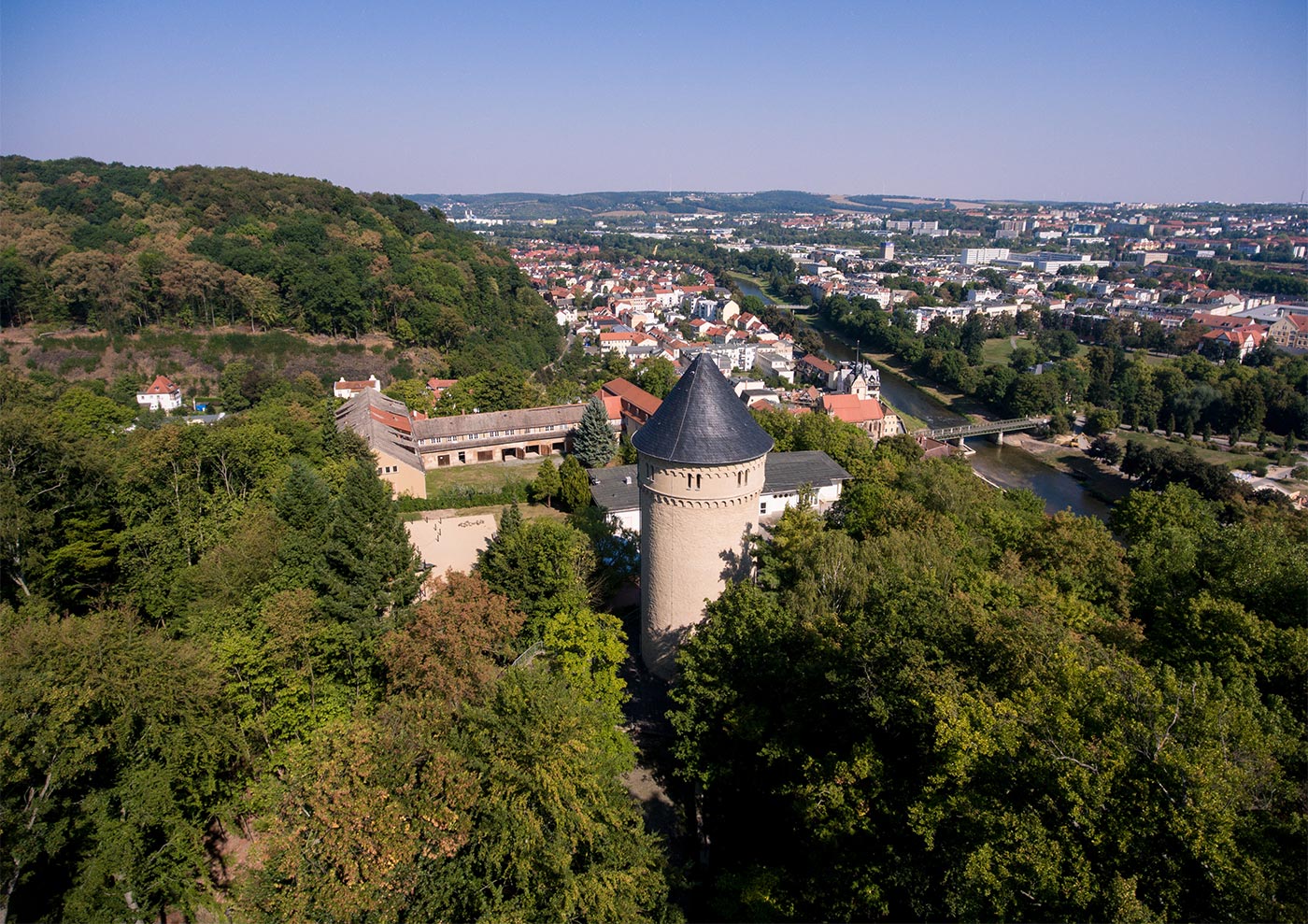 Schon allein der wunderbare Panoramablick auf Gera rechtfertigt den Aufstieg zur Ruine des Schlosses Osterstein.
