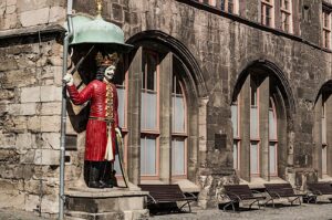 Der 3,20 Meter große Roland an der Südwestecke des Alten Rathauses wurde zum Wahrzeichen von Nordhausen.