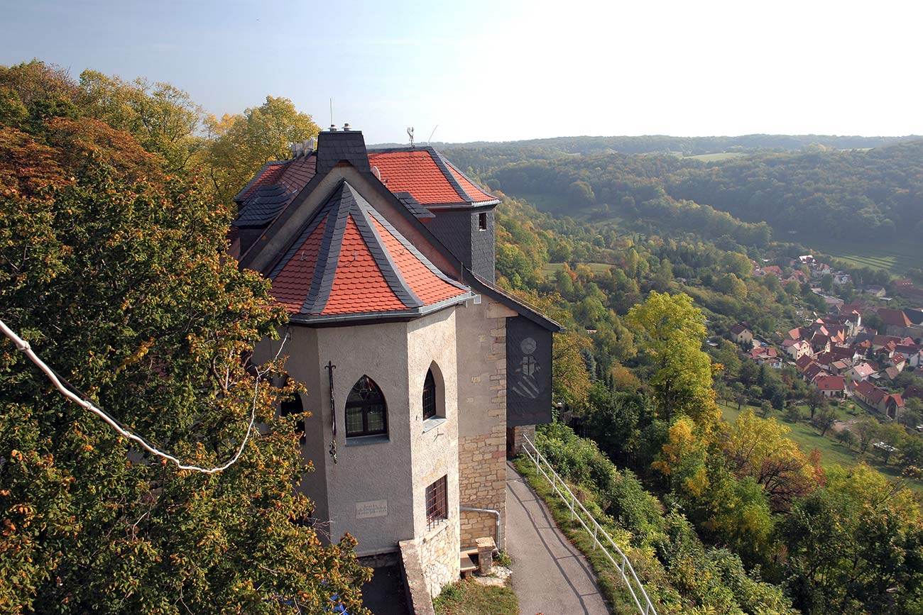 Man hat auch direkt vom Fuß des Turms einen wunderbaren Blick auf Jena. Von der Sonnenterasse der Gaststätte genießt man die Aussicht auf Ziegenhain und die umgebende Landschaft.