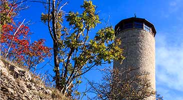 Der Fuchsturm gehört zu den Lieblingszielen der Jenaer Ausflügler. Dieser Überrest einer lange verschwundenen Burg ist weit über die Stadtgrenzen hinaus bekannt und ist sogar eines der sieben Wunder von Jena.