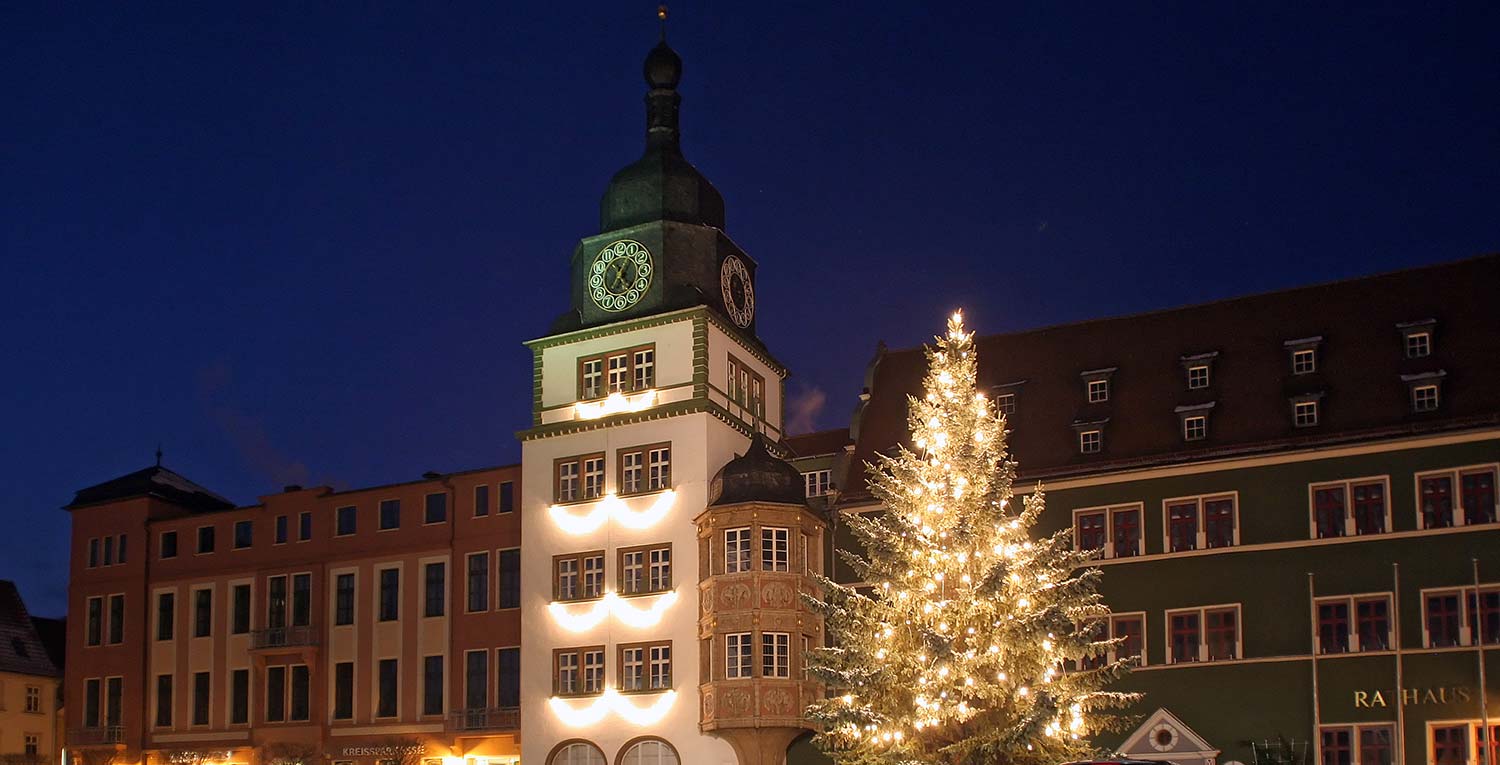 Wenn Schillers Weihnacht auf dem historischen Marktplatz in Rudolstadt wieder seine Pforten öffnet, dann dominiert er über 4 Wochen die Innenstadt. Bei allem Publikumsverkehr bewahrt dieser schöne Weihnachtsmarkt in Thüringen aber eine beschauliche und gemütliche Atmosphäre.